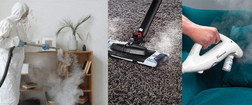 Nettoyage et désinfection à vapeur 180° sans insecticides pour les surfaces et pièces (voitures, bureaux, chambres d’hôtel, entrepôts etc.)